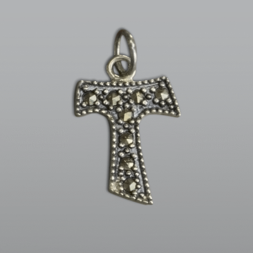 Pingente cruz tau decorada com marcassites e prata portuguesa 925.