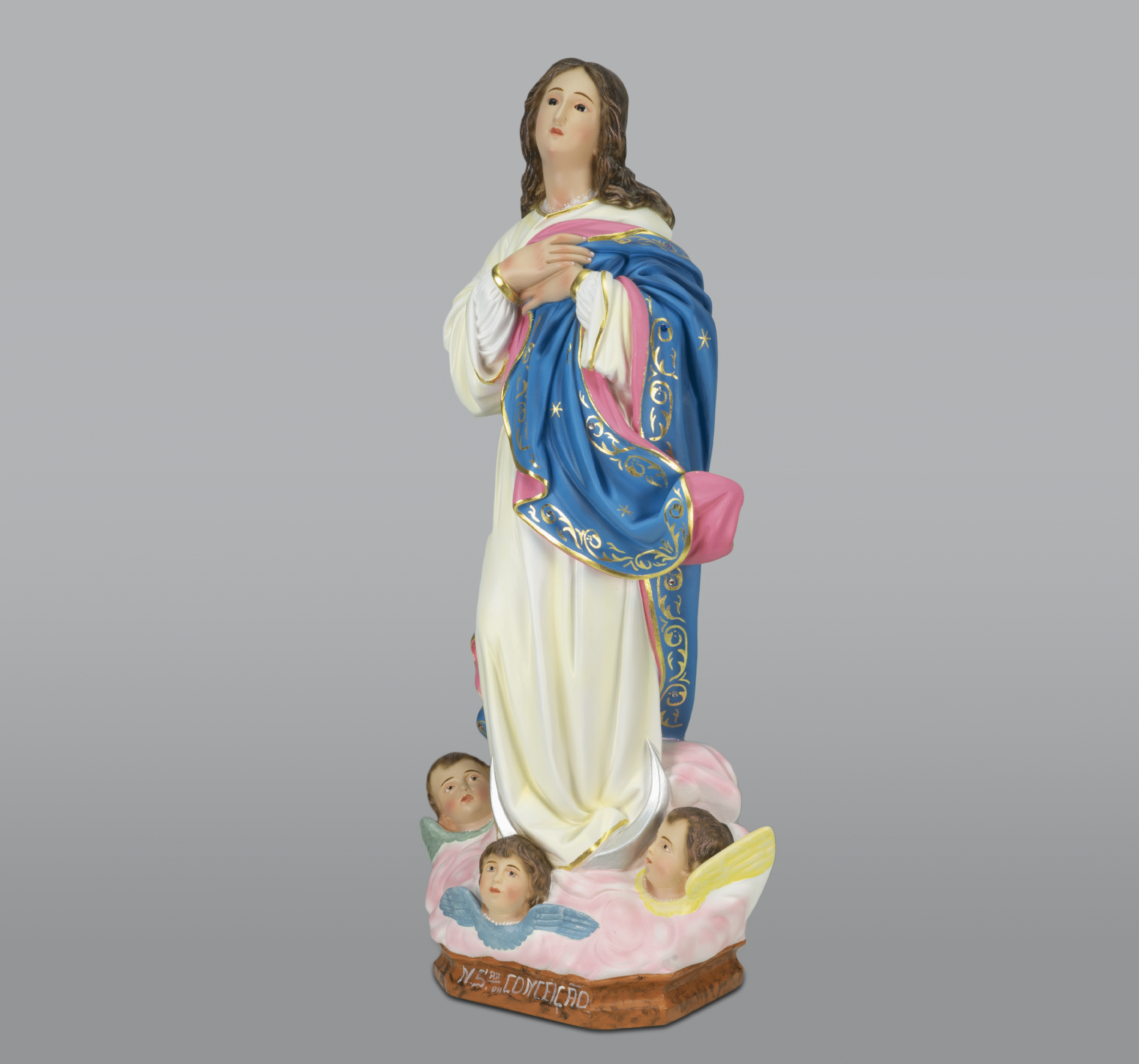 Imagem Imaculada Conceição em terra cota. Pintada à mão.