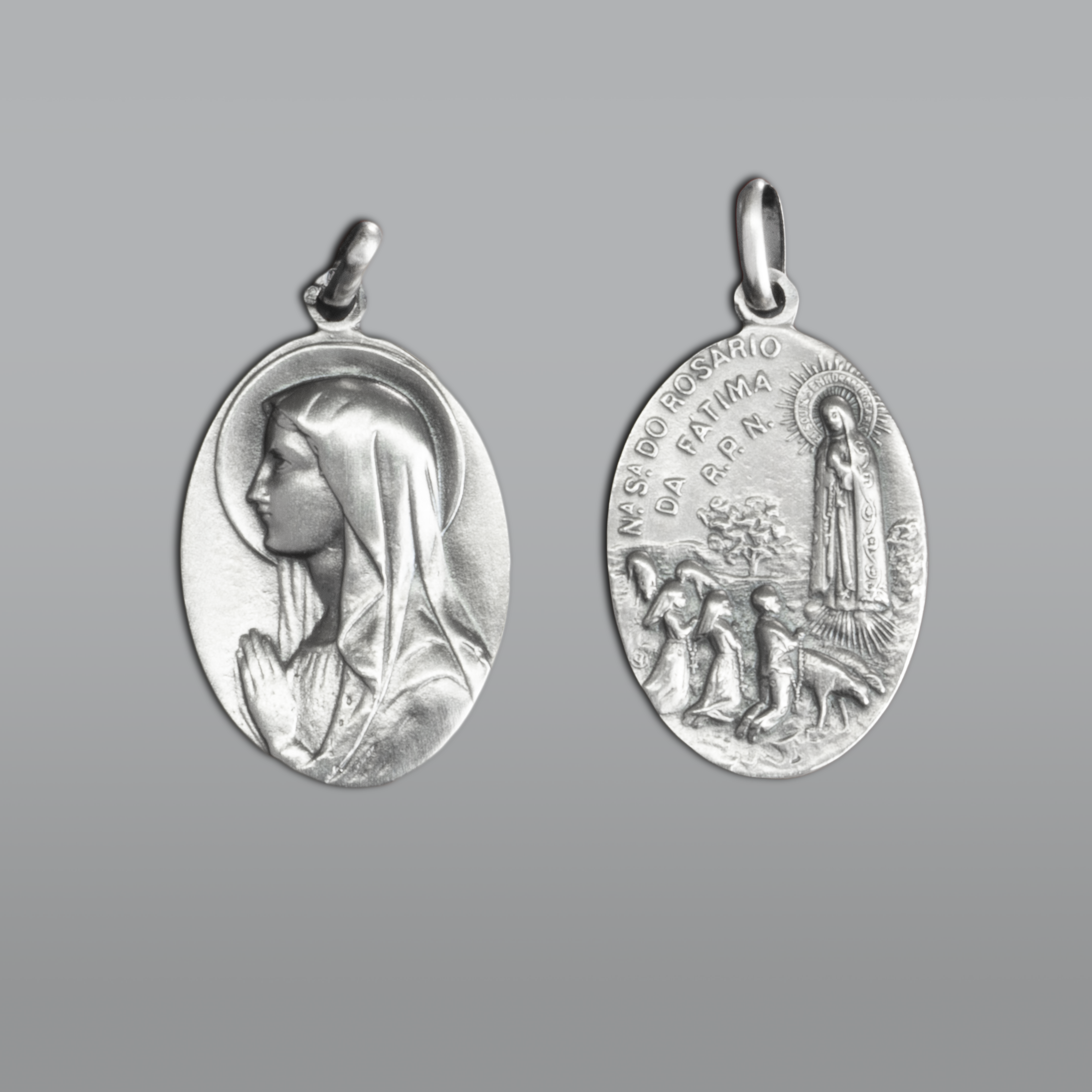 Medalha face de Nossa Senhora e Aparição em prata – 22 mm