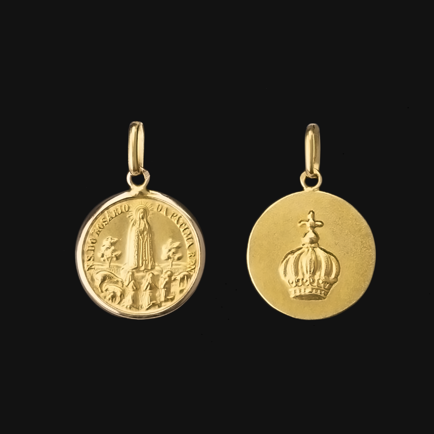 Medalha Nossa Senhora de Fátima Aparição e Coroa em Ouro de Lei (19,2 quilates).