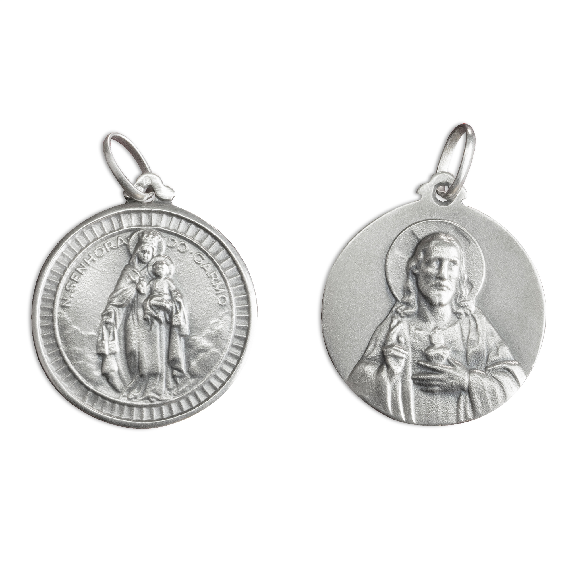 Medalha Nossa Senhora do Carmo com Sagrado Coração de Jesus em prata – 25 mm