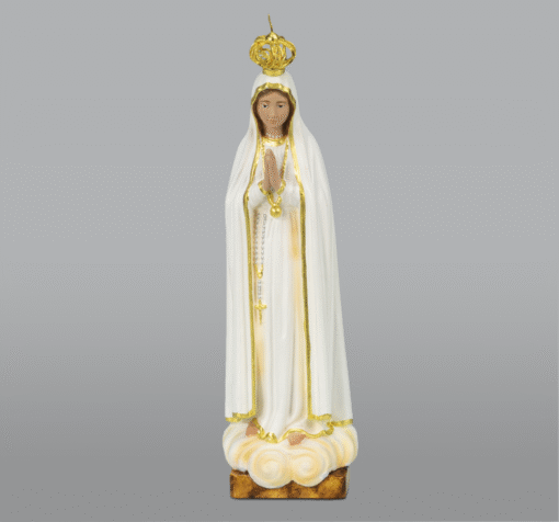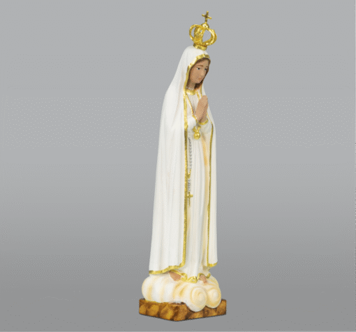 Imagem Nossa Senhora de Fátima Peregrina*, pintura a óleo e ouro fino. Pintada à mão.