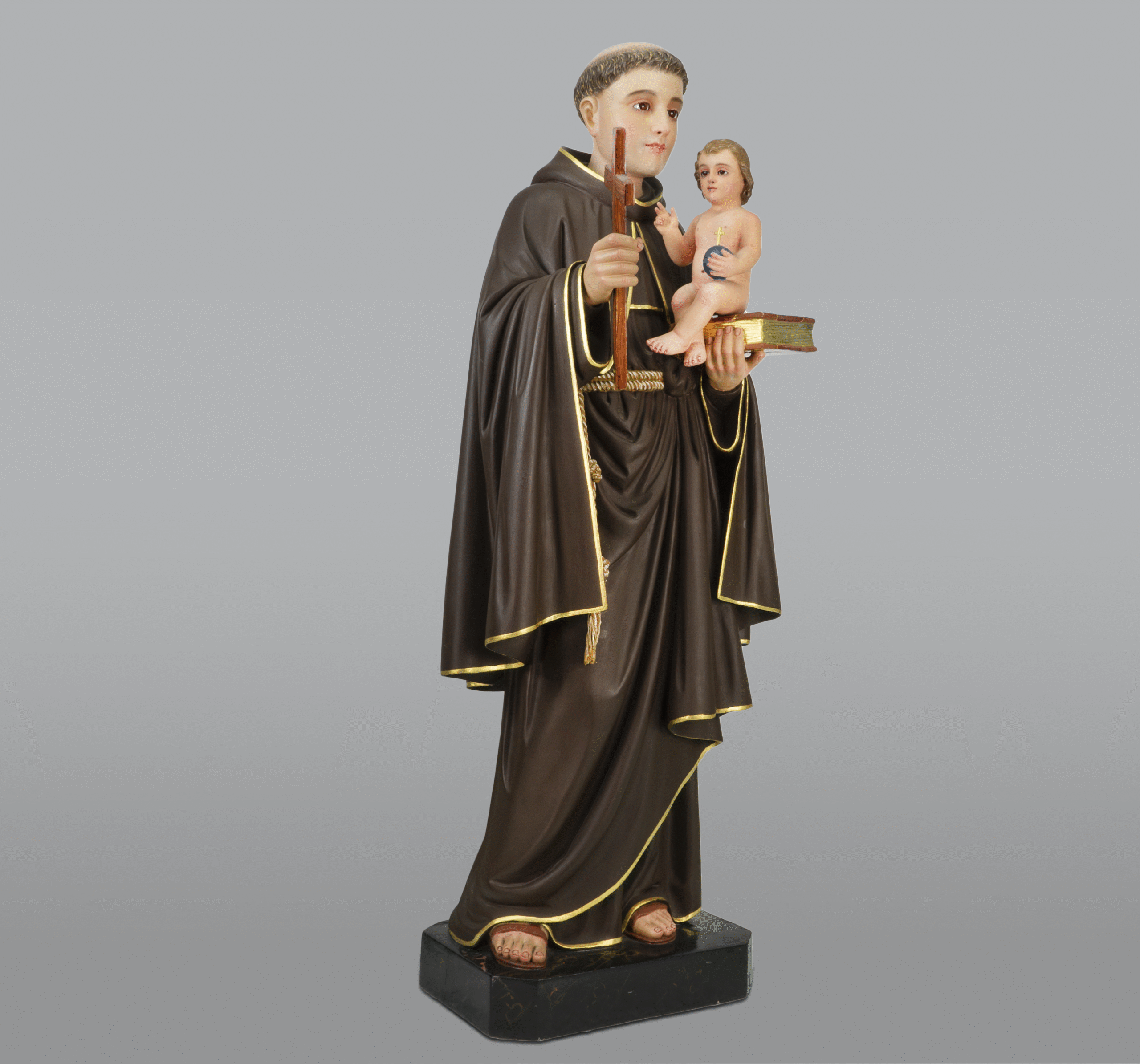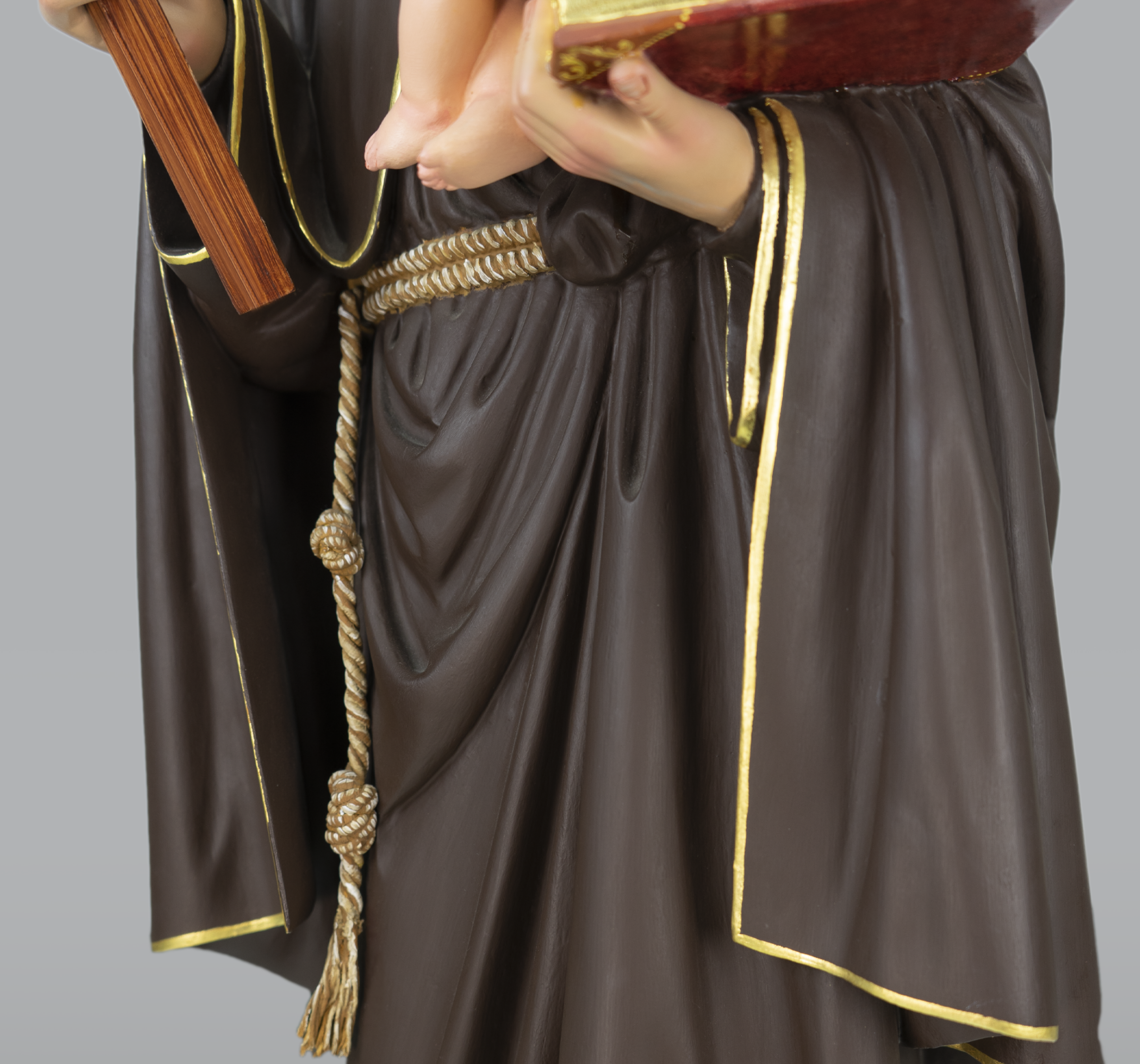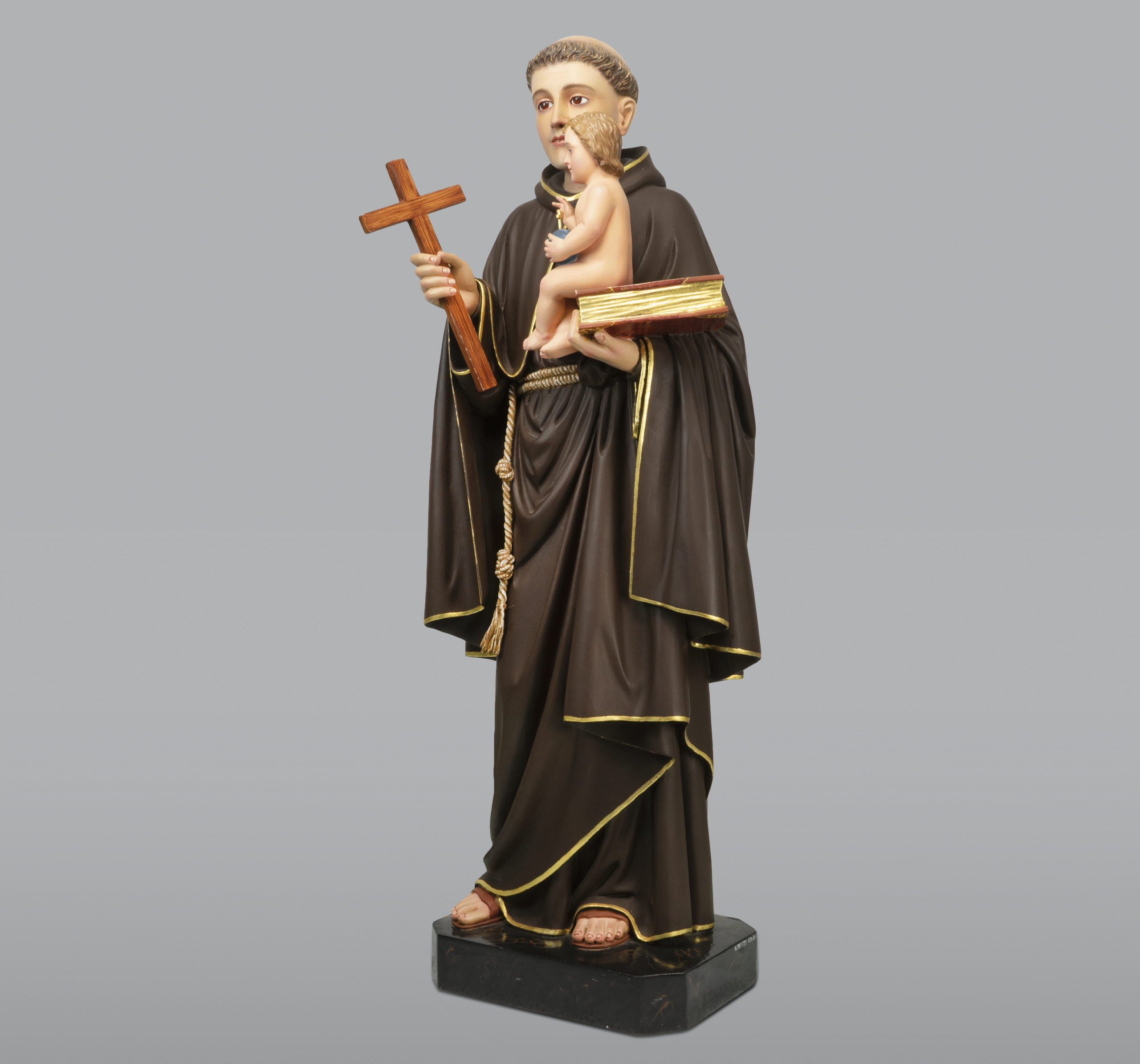 Escultura de Santo António em madeira, esculpida à mão, pintura a óleo e ouro fino, pintada à mão.