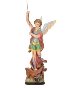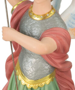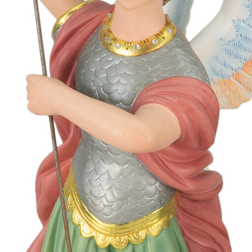 Imagem de São Miguel Arcanjo em terra cota, pintura a óleo e ouro fino nas partes douradas. Pintada à mão.