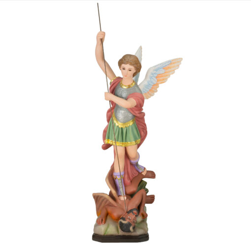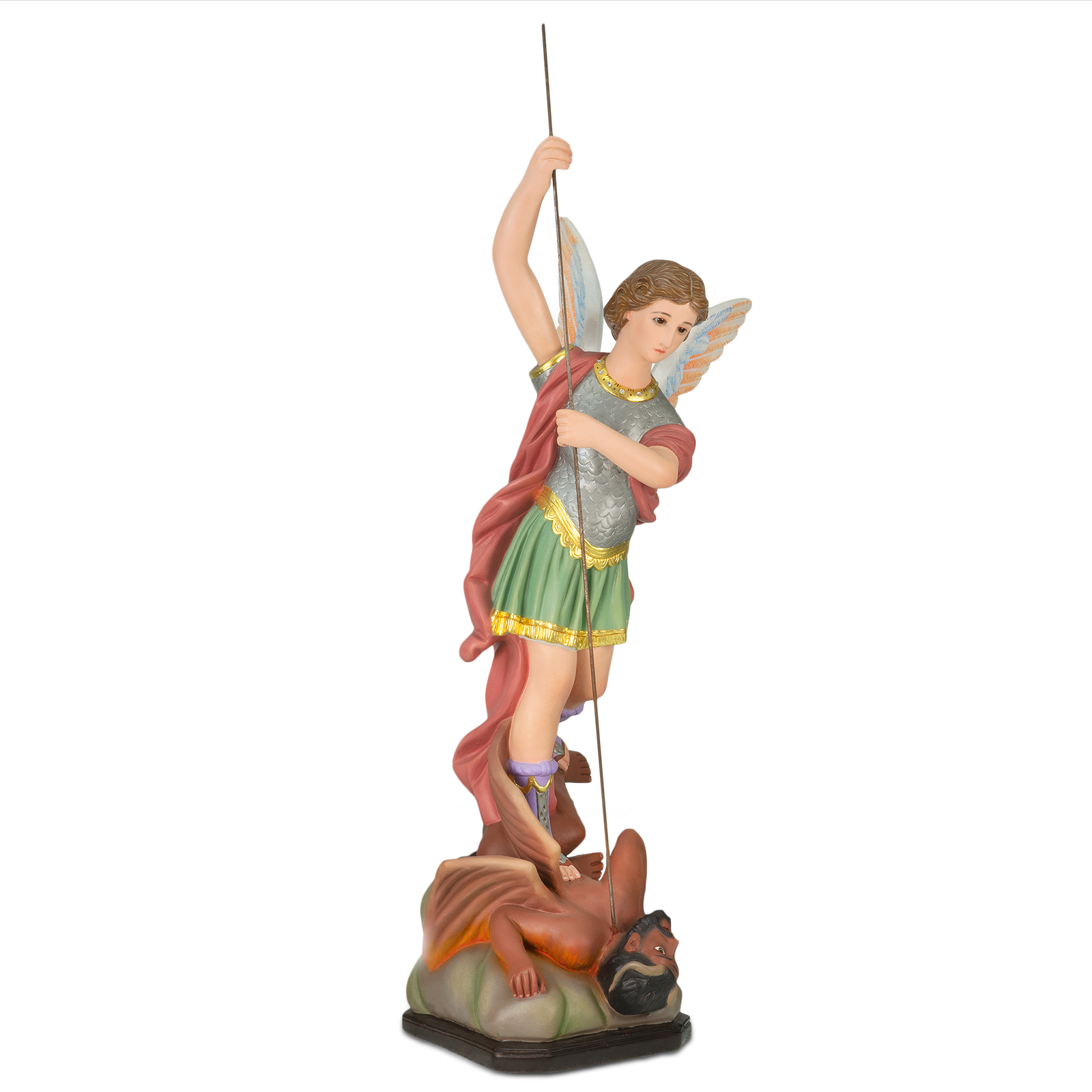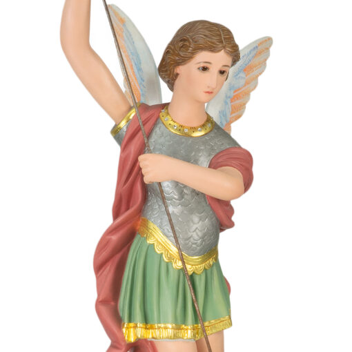 Imagem de São Miguel Arcanjo em terra cota, pintura a óleo e ouro fino. Pintada à mão.