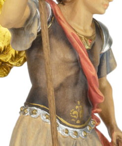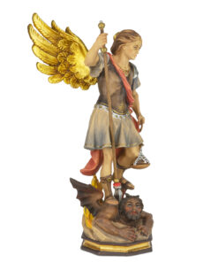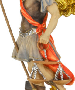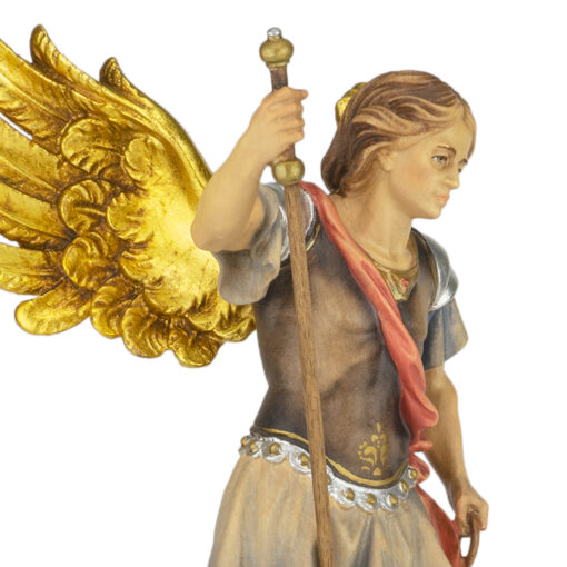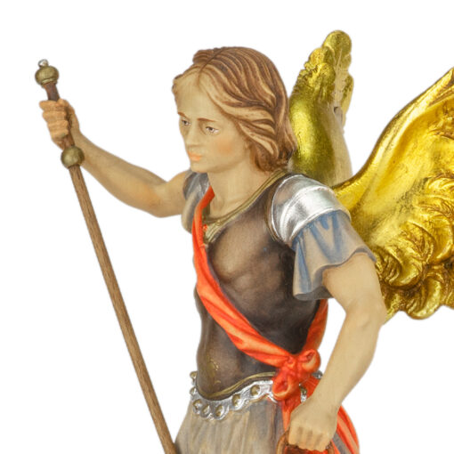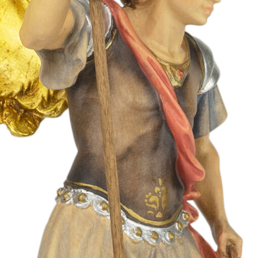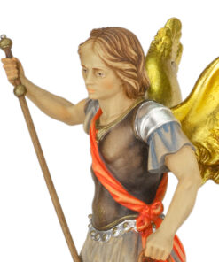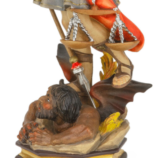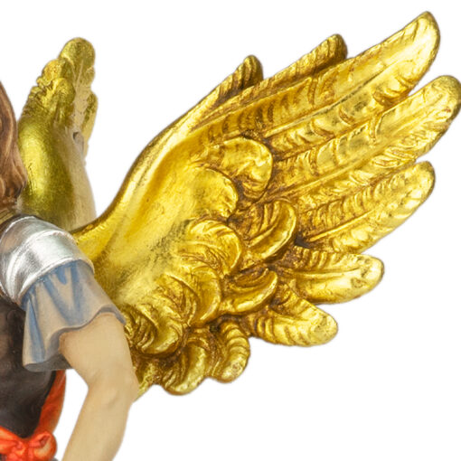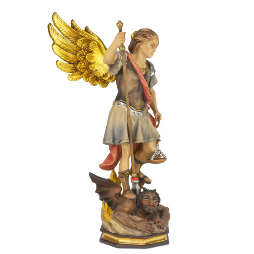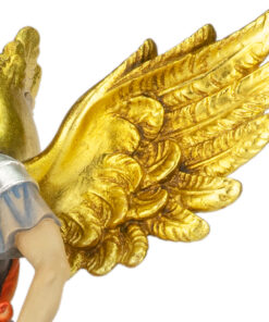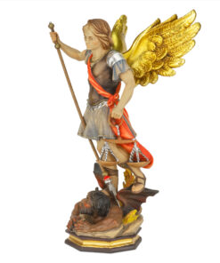 Escultura em madeira, pintura a óleo e partes douraras em folha de fino.