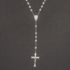 Terço produzido em material tipo pérola, cor rosa – 54 cm de comprimento.